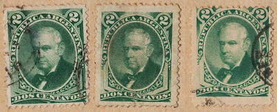 from 1877 to 1888, some overprinted and/or surcharged series were issued, with designs and values from previous series...a new portrait series, this time [Litho] printed in Buenos Aires was also issued in 1888... I have some stamps from the overprinted series , but I choose not to present them today... so we are now in 1888 with the issue of a new [Recess] printed portrait series, this time printed in the new section created by ABNC in Buenos Aires : the SABNC (South American Bank Note Company, Buenos Aires)...we will see that the engravings and designs are still of good quality, but the printings in some cases (specially in the higher values) are not the best...