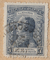 [Left] 1920 "General Urquiza's Victory at Cepeda" (1) [Litho (MINT,Buenos Aires)] Sc(283)