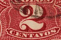 the main distinctive fact is the presence or not of a small ornament in each side of the numeral...it is simple to find that the presence of the ornaments is enough to place that stamp in the Original series and it's absence place it as a 1894 Re-engraved stamp .... another distinctive mark , but linked with this first (they cannot exist except together in the same stamp) , is the top end of the Numeral 2...if You look carefully to the other stamps that presents values with the numeral 2, You will see that the numeral's top end with a small white ball,but this one looks like the picture at the right...so , after this talk about the two types of 1c and 2c we can conclude that my 1c stamp is original and my 2c stamps are from 1894...