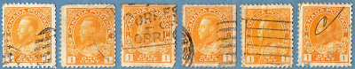 With the start of King George V reign in 1910 , the appearance of a new Definitive series was just a matter of time, so , in 1911 a new series 'pop up' from the Canadian Postal Service and it is known as the "Admiral Series" , because of the Uniform the King is wearing in the picture...it is also a beautiful series, like many , many others from KGV... it is beautifully engraved by Robert Savage and two of the values (1c and 3c) could be of 2 distinct types...