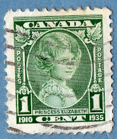 This is one of the stamps of the 1935 series commemorating the Silver Jubilee of King George V... the stamp represents Princess Elizabeth as a small child... this stamp could have a particularity , that is to have a small dot below the eye... it is the result of a fault in a particular plate and it only affects one stamp in each sheet ...this variety is called 'the weeping Princess'..I took this scan of an old Canadian catalog....