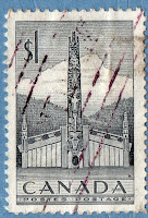 The 3c brown stamp, representing the "Fathers of Confederation" is invalid, it is highly damaged, with two small holes in the center, and that I think is something that qualifies a stamp like invalid....it is a stamp from 1917 that I present just to show you, because he doesn't entered the collection... the other two stamps , of 2c and 12c, belong to the 1927 series that commemorates the Anniversary of the Confederation...