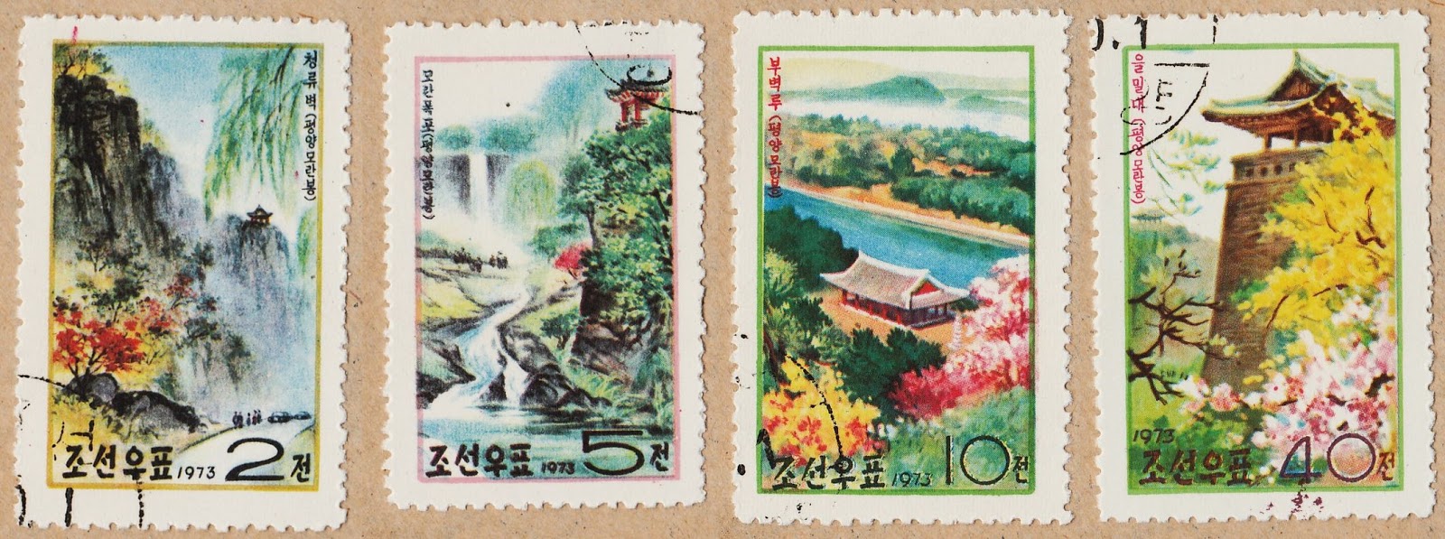 1973 "Moran Hill Scenery, Pyongyang" (4) [Litho] Sc(1147,...,1150)